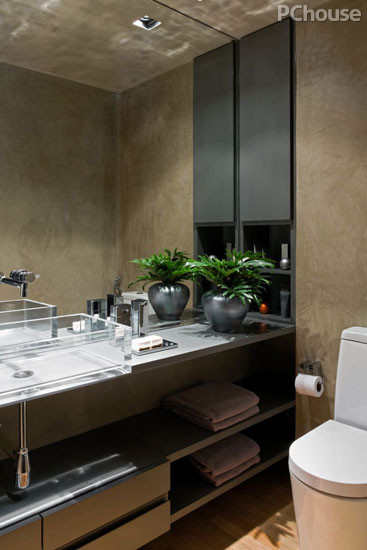 编辑点评:纯粹的空间基调让木质柜体的纹理于空间中低调地铺排质感;内嵌与开放式的双重储物设计,尽可能地放大着卫浴间的储物功能,满足日常的收纳需求。