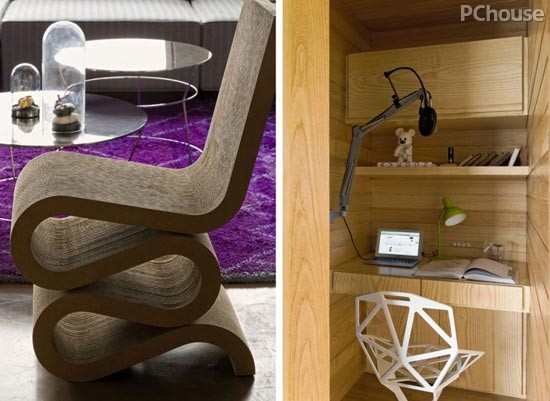 编辑点评:公寓中,总能发现几把造型满分的几何型单椅。造型、材质各异的它们有着相同的流畅与时尚,在简洁的空间环境中起到很好的装饰作用。