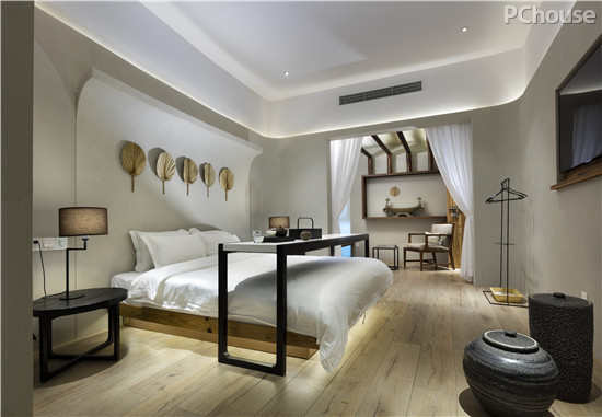 通过精心布置,有美有意境。开放式的空间布局,现代与复古的交融碰撞,白色墙面与浅色地板的辉映,精挑细选的简约设计家具,还有那唯美的纱幔垂于各处,每一处线条和灯光都十分考究。