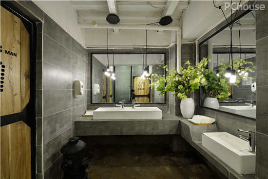 二层,除正常的咖啡座外,也将男女洗手间设在了此处, 以保证一层的面积能最有效地利用。且栏杆旁的座位,正对南面的大屏、及真火壁炉。将一楼的美好景致尽收眼底。