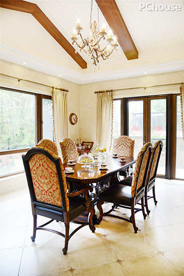 编辑点评:宽阔的餐厅区域有着开放而全面的视野优势,无论身处哪个方位都能看到很好的风景;采光充足而且亲近自然,非常适合家庭聚餐。