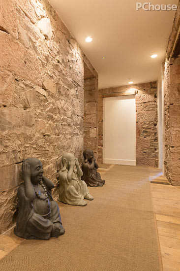 编辑点评:古堡的长廊摆放着各种中式的小泥佛像,高文安先生对古堡本身的原始建筑做了保留,并着重暴露了石材的部分,以彰显精美干净的清水泥线条。
