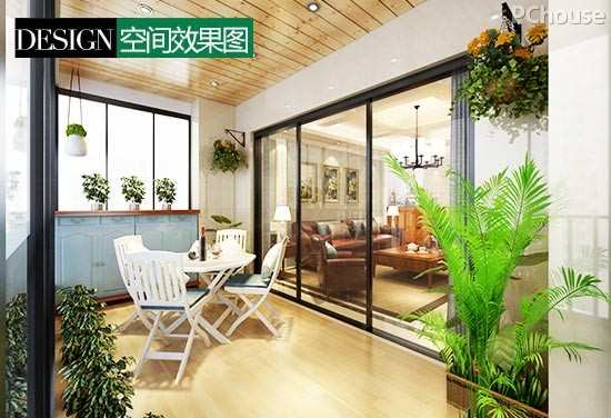设计解读:实用的大阳台,如何打造成惬意的休闲空间?设计师让阳台空间摆脱束缚,以玻璃推拉门的形式,实现室内空间与室外环境相融合,营造舒适、自然且宽敞的休闲空间。几株绿植的简单点缀,也为空间注入了些许生机活力。