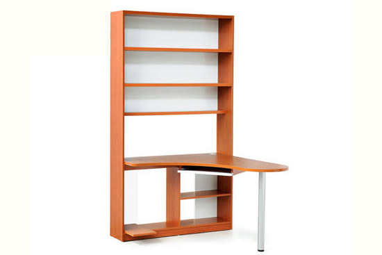 如果觉得一体式的书桌太大太占位置,不妨考虑简约式的书桌,一张桌面四个桌脚,简易舒适的风格,就能成为一个工作的角落,也可以作为平常的梳妆台,配合墙面的层板,摆放各种用具和装饰,IT一族、白领的最佳选择。