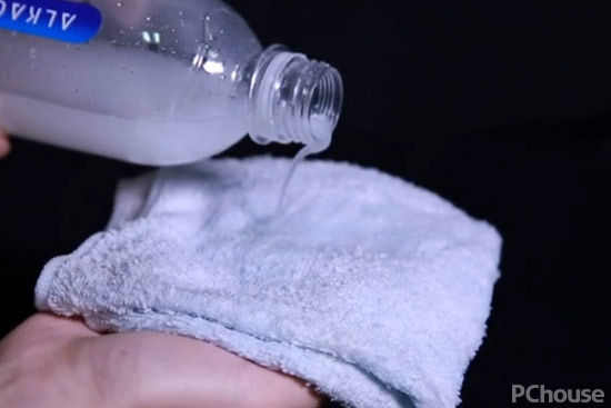 2、用湿抹布沾一点混合液,对着水槽污渍处擦拭。