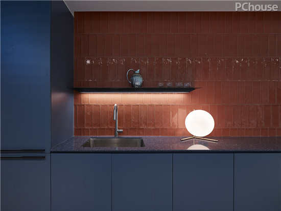 设计师将茶水间桌椅与收纳柜相结合,让设计兼具实用与美观。活动式的拉椅下方提供杂物存放处,而长型的蓝色桌面则以欧洲中古世纪的长椅造型加以简化,呈现出「大椅包覆小椅」的趣味意象。