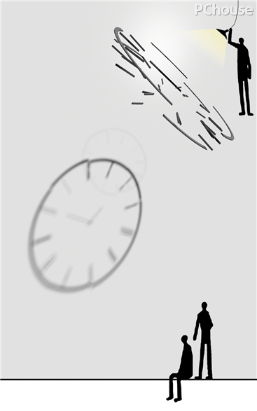经由光影投射及观看角度,将解构的时钟片段重新组合为一面完整时钟外观。让时钟在分秒之间,不间断地解构与重组,体现钜亨网之于时间之紧密关联。