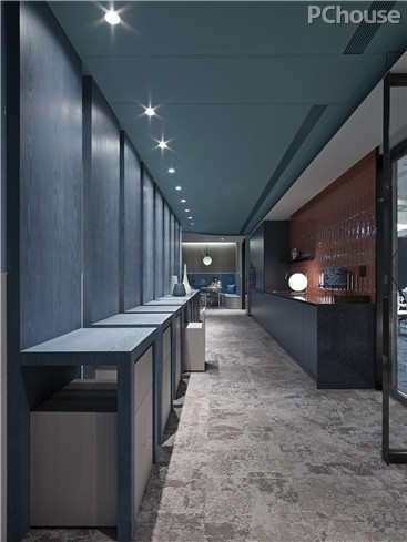 整体空间以金色及蓝色为视觉基调,呼应财富与威望、知识与信任的冀求,更于主廊道及茶水间设置木质开放式座椅提供阅读、讨论与休憩,让室内营造出流动性的时间暂留,在善用空间使用的同时,型塑一处可以供给每双追赶时间的脚步停下休憩之场域,让看似理性的时间加入空间的感受与体会,令时间因感性而激发转换不同以往的意涵。