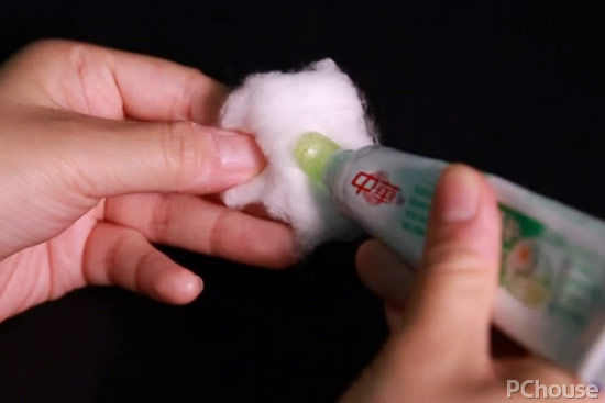 1、取脱脂棉(医用棉花),在棉花上粘上一点牙膏;