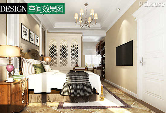 设计解读:经设计师改造后的主卧空间,原有的卫浴间变身成为一个惬意的书房,兼顾工作与休闲的功能,为屋主带来布局上的小惊喜。而为了呈现卧室空间的静谧气氛,软装上也以舒适实用的美式家具为主,有效地建立起一种温情暖意的睡眠氛围。