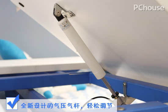 全新设计的气压气杆,轻按把手即可轻松调节桌面角度,减慢桌板下降速度,防止小孩因桌板下降速度过快而夹到手部的情况。
