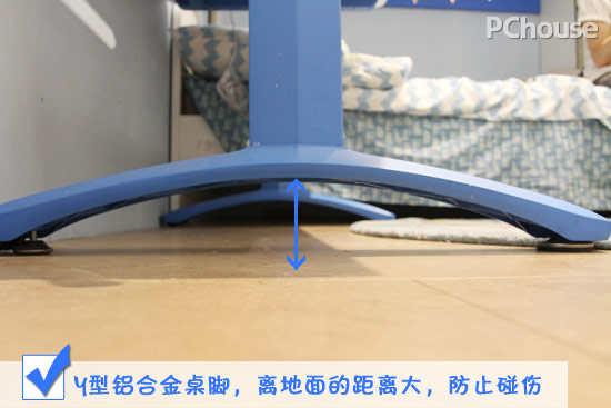 Y型铝合金桌脚带来更稳定的支撑,而且离地面的距离较大,防止孩子光脚时踢伤脚趾甲。