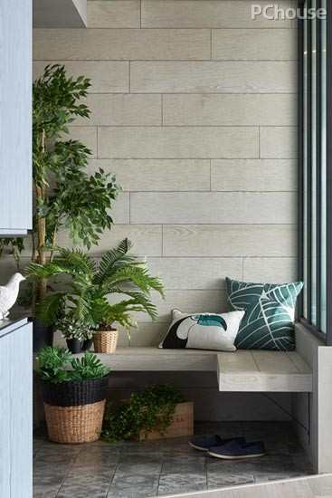 编辑点评:玄关处以浅白色的木板为主调,营造了一个干净的背景墙。恰到好处的绿植,点缀着简洁的走廊和墙面,为空间带来了生机与活力。贴心的板凳设计,让人一进门便能感受到家的温馨与美好。