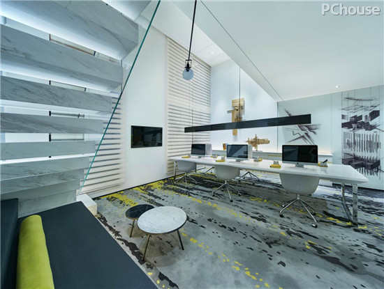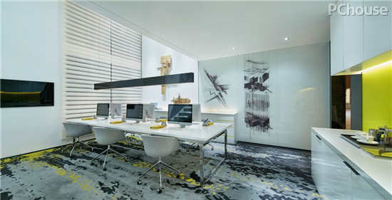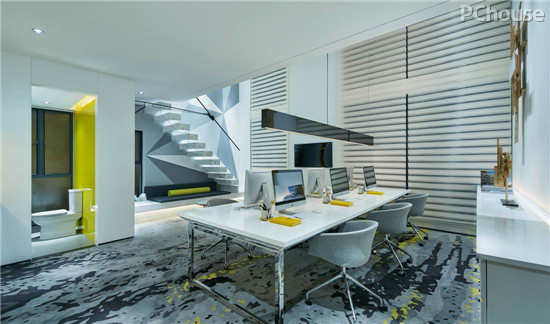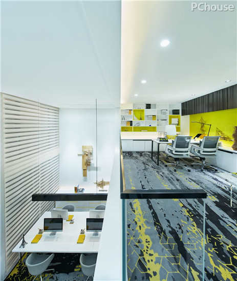 ▲设计亮点:色彩跳跃的涂鸦地毯使空间更富创意,也让办公环境更加轻松活泼。如此鲜明的黄色搭配,让人立马想到搞怪的小黄人。