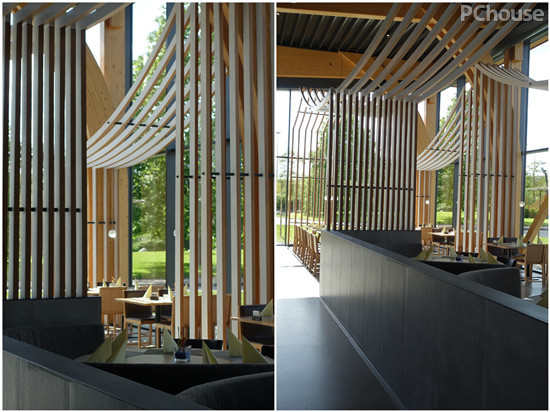 设计说明:除了大面积使用的木条,这只似蜂巢状的吊饰里也有中式的意境存在,飘渺而梦幻,为空间增色不少。