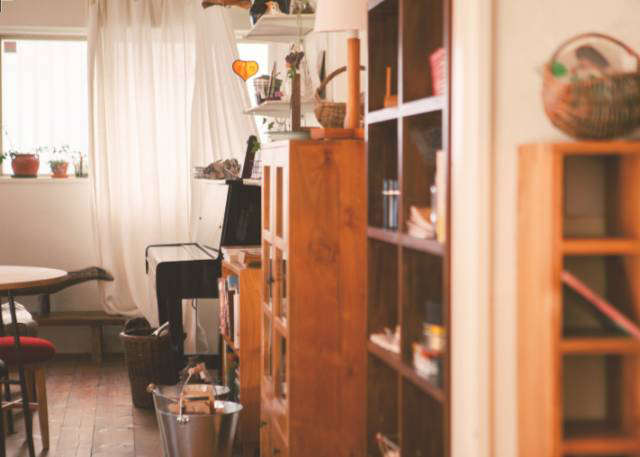 这个她自己亲手一点点营造起来的空间里,摆满了各种心仪之物:她自己设计、制作的木质家具,从拉脱维亚买来的各种形状材质编制的篮子,从立陶宛订购的亚麻布......