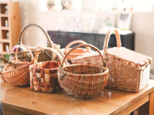 岩琦朋子很喜欢各种编制的框子,她的小店里摆放了来自各国的、各种各样的篮筐。