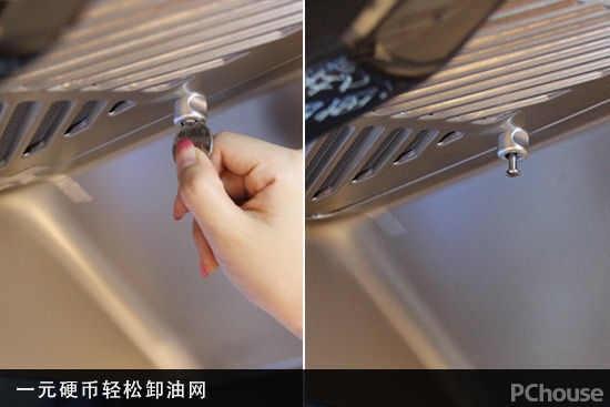 普通烟机拆卸滤网都必须要使用螺丝刀,这次在现场我们只用一块钱的硬币就将固定油网的螺丝卸下,在家里找不着螺丝刀的时候也不必慌张,一枚硬币就能轻松搞定。