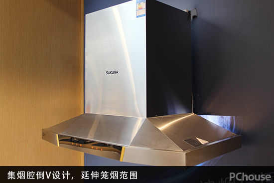 烟机在结构上采用了倒V形设计,这样的设计将机体宽度900mm的笼烟区域向两侧延伸至1500mm,实现超大的笼烟范围,集烟腔纵深也扩展至112mm,烟机的笼烟效果进一步增强。同时,V形设计能让烟腔的两侧斜面更顺畅地将油烟导入吸风口,让油烟无所遁形。