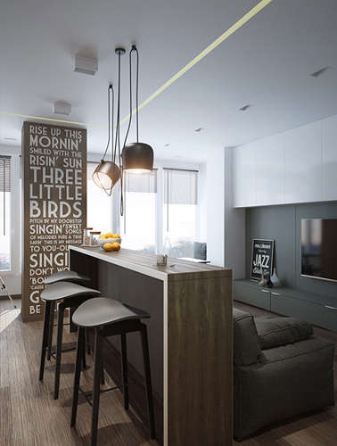 在室内设置吧台,须将吧台看作为完整空间的一部分,而不单只是一件家具,好的设计能将吧台融入空间。吧台的位置并没有特定的规则可循,设计师通常会建议利用一些畸零空间,如果将吧台融入当做是空间的主体时,便要好好考虑动线走向。良好的设计具有引导性,无形中使居住往来更加舒适。