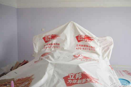 除了家具连地板、灯具都被保护到位了,全方位保护好你的家,无需你动手,即可轻松翻新墙面。