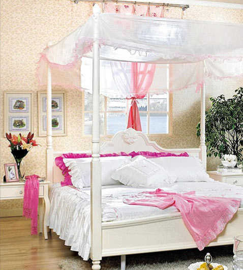 如果想让睡床与壁纸表现的主题相呼应,可以搭配几个蝴蝶图案的靠垫和枕头。