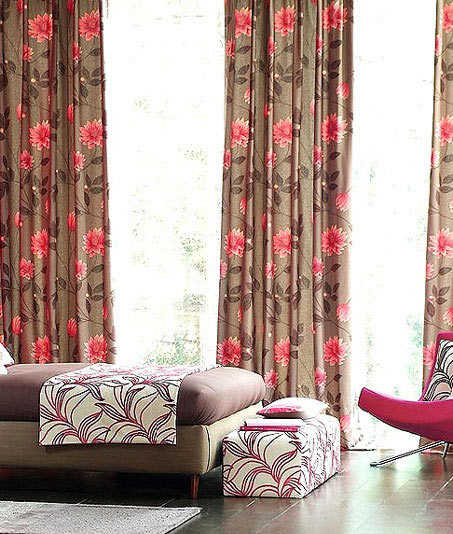 在这个喜庆十足的卧室里,主要有三种比较接近的色彩相配:暖橙色内帘和绛紫色外帘相配;深红色床品和浅橙色布艺条纹相配。这种深浅搭配的方式,令卧室充满了魅力,高纯度色彩的大量使用,作为卧室最重要的表现手法,不仅是在渲染新婚氛围,更能传达心意。