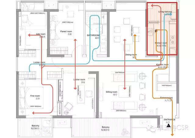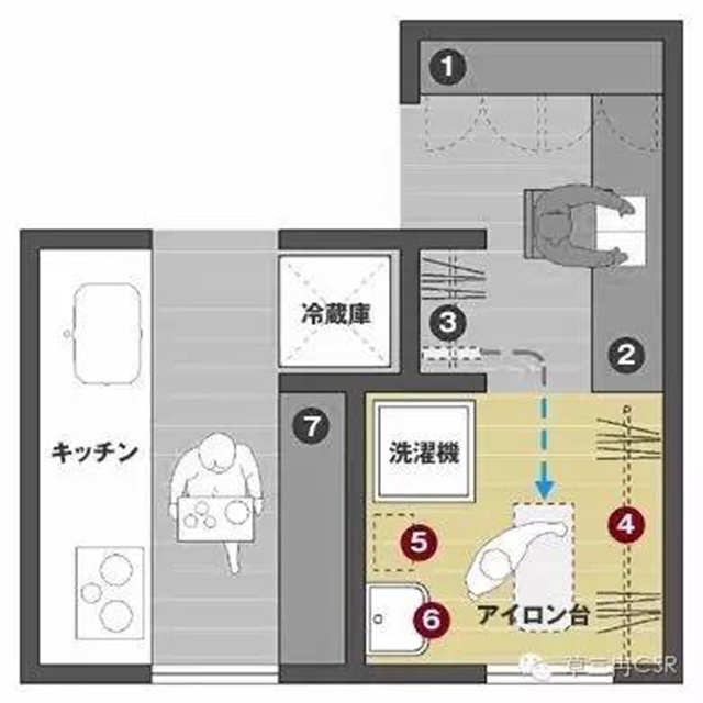 如果你画出自己家的做饭、洗衣和打扫路线,会发现这三条路线几乎都会在厨房重合,也就是说,厨房是家务使用频率最高的地方,如果浴室和家务间(工作阳台)设置在厨房附近,能够大大提高做家务的效率。(再次证明挑选户型的重要性)