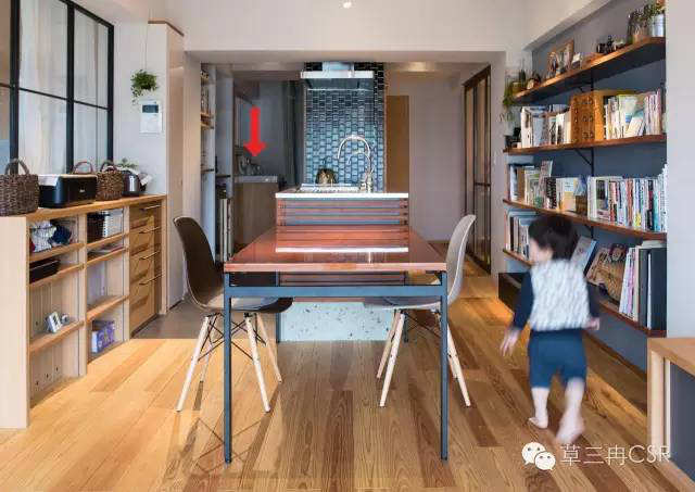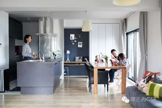 日本房子有的会在客厅电视墙背后设置一个穿过型的家务间,比如从阳台上收下来的衣服先放在客厅家务间中叠好再拿回房间,这样就不会破坏客厅的休闲动线。