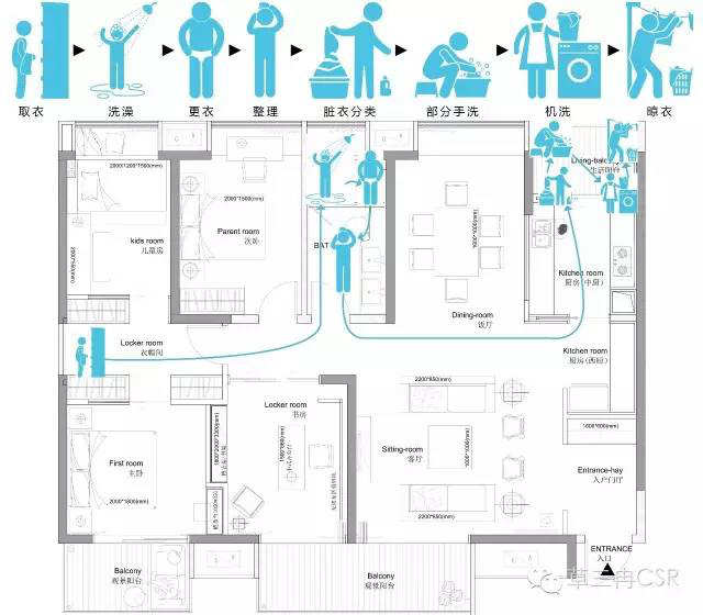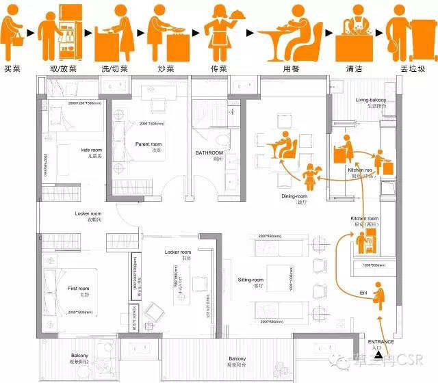 居家生活中最重要的家务“三座大山”,就是烹饪、洗衣和打扫,这三者进行的路线和时间,依据户型和生活习惯的不同,可以变幻出千万种方式。虽说没有绝对的标准答案,但也有一些规律可循,下面抓取一些关键点的节点跟大家说明一下。