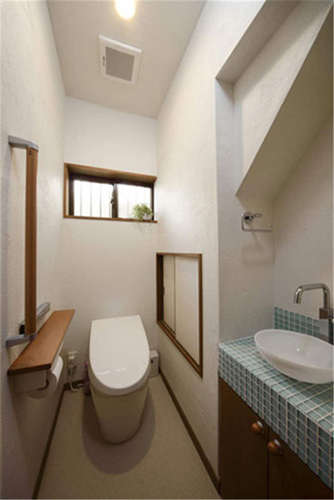 白色屏风样式收纳。米色的地面,搭配木质的边框,淳朴的风情弥散整个空间,给人一种整洁、以人为本的感觉。马桶边上,白色屏风样式的小区域里,可以放入手纸等常用物品,复古的样式,温馨简洁。