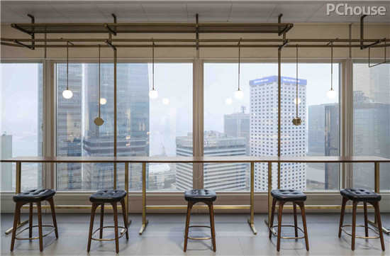 到达第27层后,楼梯空间变得开放而通透,削减了楼梯的实体结构,大面积的开窗和透明玻璃捕捉了更加广阔的室外景观。如恩在休息区内设置了悬挑式的观景平台,从这里可以俯视到下方的楼层,获得奇特的视觉体验。同时也可坐在这里以向窗外眺望,欣赏海港的开阔风景,为这段用楼梯承载的探索之旅划上完美的句号。