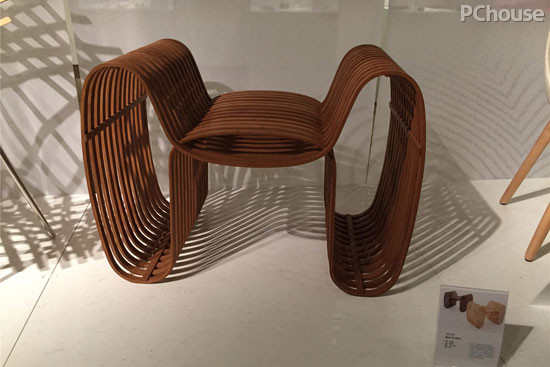 设计说明:这是一个请把竹材的领结椅,具有稳定的机构,借以支撑重量和建构出置物空间。将总长三米八的竹积层进行多次大幅度的烤弯,形成优美而且多变的造型曲线。