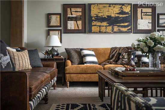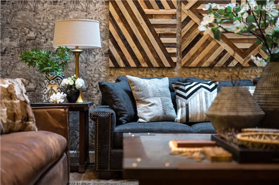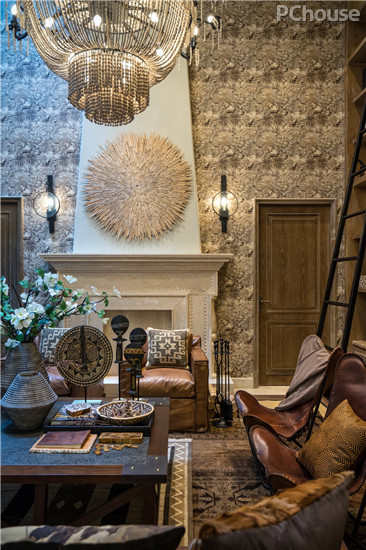 设计说明:鹿角、壁画、毛皮、条纹、旧金属等元素的巧妙运用,既有怀旧优雅的古典魅力,又有粗犷豪迈的西部风情,成功地将一幅美式文化生活画卷导入居住者的起居生活。