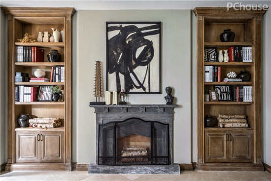 设计说明:自由与舒张是男主人会客厅的最高价值取向,设计师通过生动的艺术再现,比如面具和纹面,呈现出深厚的美式文化和强烈的艺术表现,渲染出一个令人遐想无限的、极富视觉感受的整体空间。