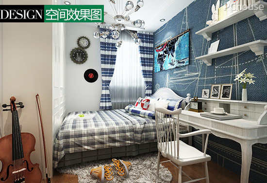 设计解读:原户型次卧的家装布置欠缺合理,应业主要求,设计师将次卧改造设计为成长型儿童房,满足小孩成长的需求。巧妙的是,将床和衣柜整合在一起,这样的话摆放个一米五的床便不成问题,而且还能保证有足够的空间来摆放书桌,呈现“麻雀虽小、五脏俱全”的视觉效果。