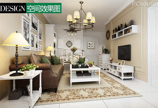 设计解读:美式风格往往更多的是稳重的感觉,而且以棕色原木为主。但设计师以创新方式,选用白色的枫木家具,并加入了田园风的元素,整体效果简洁明快,更适合年轻夫妇的审美。细节上以深色复古的皮质沙发、餐厅装饰窗进行点缀,让整个客厅尽显美式韵味。