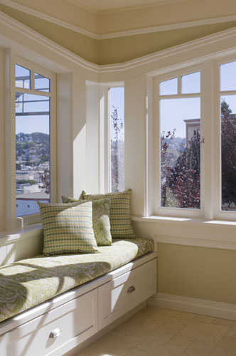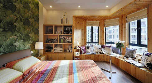 注重生活情调的女孩们可以在飘窗挂上自己喜欢的颜色的棉质或者纱质窗帘,一盏香薰灯,一个柔软的飘窗垫,几个柔软的靠枕,这样就简单的打造出了属于自己的一个舒适的私密休闲空间。