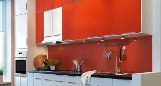桔色,是时尚年轻的色彩,非常适合年轻夫妇使用。直线型的橱柜设计可以将空间面积充分利用,非常适合超小户型的厨房设计。