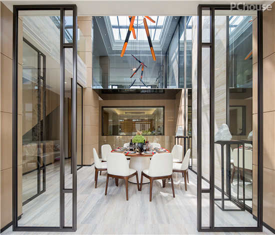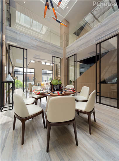 设计说明:在一层的空间里,设计师还选择通过茶室来为“东方极致”的风格添上一道靓丽的风景。茶文化是最能表达东方元素的介质,通过茶室展现出忠实于统一的格调,回归到“东方极致”的主题,静谧的空间像是在诉说着一个故事,让人于闹市中归来也能找到内心的一片安静。
