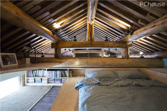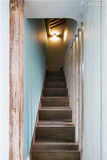 对称的楼梯通往阁楼。设计师增加出的两个阁楼,设计师预备留给康达作为他的卧室和书房。