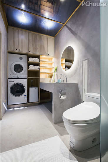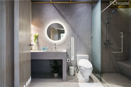 卫生间以纳米水泥为主材,可以做到防水的同时,营造出质朴的怀旧感。