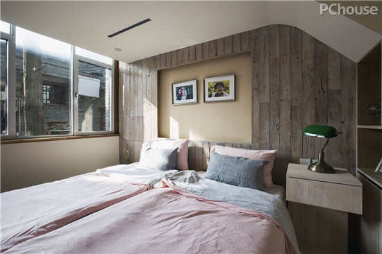 东侧是康达的房间,老的梁柱结构成为了天然的隔断,又保持通透,这样康妈妈在客厅的时候,楼上的人也可以清楚地看到。西侧的房间配置基本一致,给护理康达妈妈的表姐提供了一个休息的场所。