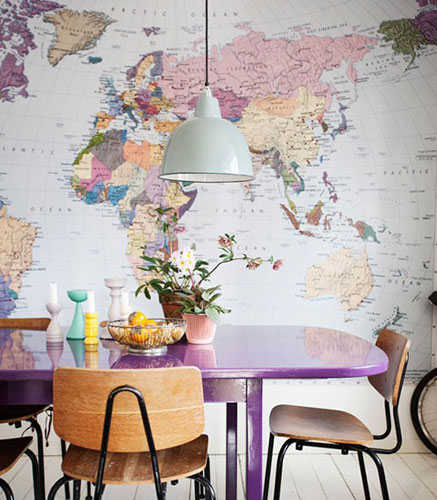 你说夏天太热,妹子们也都很豪爽,不用那么多粉粉嫩嫩的布艺软装,那小编建议就换个颜色调调氛围吧,比如说餐桌直接换成一个不常见的紫色,再用一张一体大壁纸装饰,简单利落一次性搞定,但是注意将壁纸调调色,浅紫的色调和桌面颜色相呼应,那么,这个低调奢华的下午茶聚会地点就搞定咯。