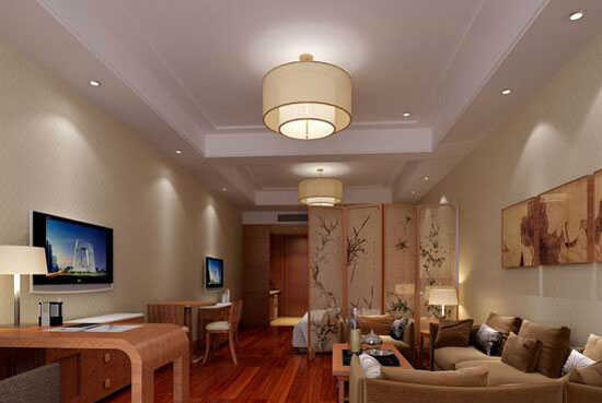 小编的话:淡雅的暗纹理墙纸让这间客厅显得干净中具有有细节感,以水墨画图案的屏风作为这一空间中的隔断,双层圆筒形灯具在顶部显出一份静谧,米色系的沙发与木质家具组合在一起,使这间客厅还具有了一些禅风在其中。