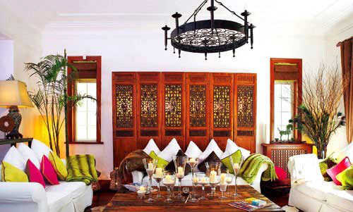 case8:客厅是中西合璧的,既有传统的中式家具,又有宽大舒适的西式沙发。后方的一排中式门是很不错的装饰,两边凿出两扇对称的窗户,给整个客厅带来了光线。