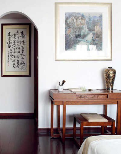 高品质的书画分布于这座公寓的各处即便是一个外行也能大致读出其中的风雅。