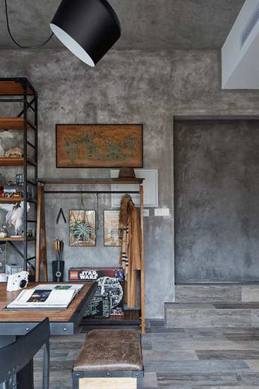 设计说明:二楼主卧、书房同样是以清水混凝土为主要材质。值得一说的是,设计师为了配制出满意的材料,可谓大费周折。