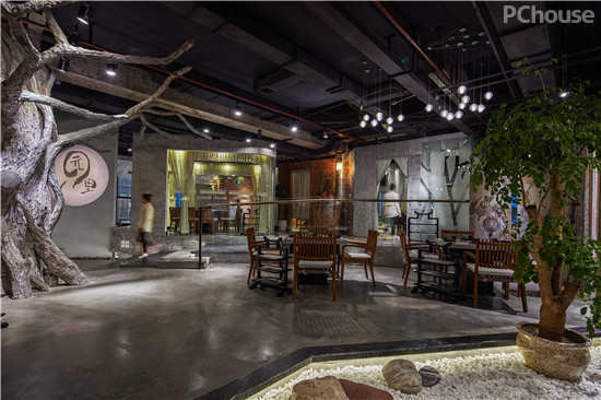 设计说明:设计师很好地运用屏风及玻璃材质作隔断,包厢风格还结合红砖以及顶部的黑色钢材打造出工业风,玻璃材质自带布帘的贴心设计,让空间私密性收放自如。
