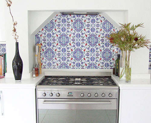 厨房的青花瓷花纹的瓷砖,同样是蓝色、白色、(银)灰色的搭配,感觉截然不同,传统中国风的加入,让厨房的颜色有了深度。并排三头瓦斯炉占地面积小,功能大、效率快,适合忙碌的都市人。